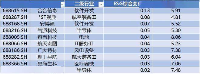 上表是ESG评分变化上升的前十家公司(剔除新上市公司),分别为:合合信息、*ST观典、安博通、气派科技、容百科技、航天宏图、广大特材、理工导航、昊海生科、芯原股份。