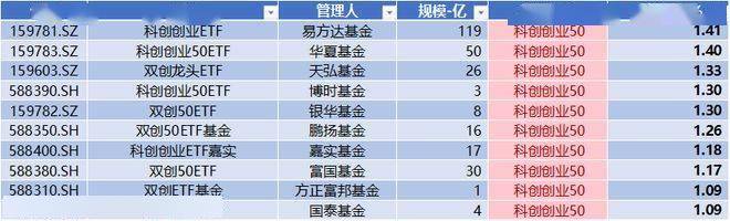 上图可见,根据最新数据,发行并管理科创板ETF基金的公募基金管理人共有20家,总规模超近3,000亿。本文列示前十家。其中,华夏基金一家独大超过1,000亿,其次是易方达基金。