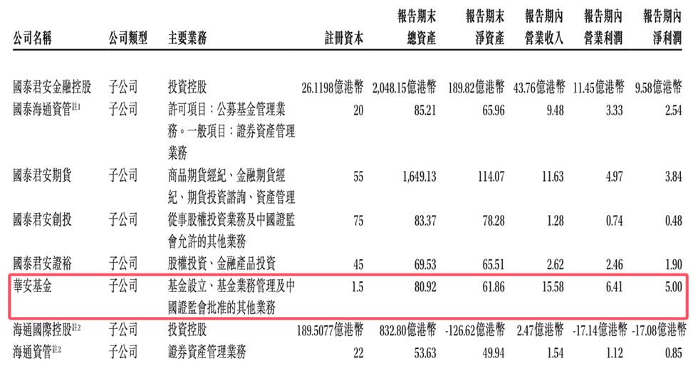 根据母公司国泰海通2025年半年报,华安基金报告期内营业收入为15.58亿元,同比增长7.15%;净利润为5亿元,同比下降3.66%。营收增长主要来自管理费收入,但利润下滑反映了投资端盈利能力不足,公司整体盈利模式的可持续性仍面临挑战。