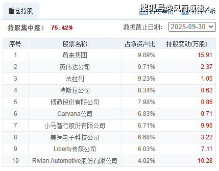 该基金十大持仓中蔚来跌幅较大,前十持仓占总持仓的75.42%,基金风格属于新能源行业。基金净值相对跑输市场(属于新能源行业汽车制造方向的主动型QDII混合基金,跨市场,今天净值是12月31日的)【基金规模2.61亿元】。