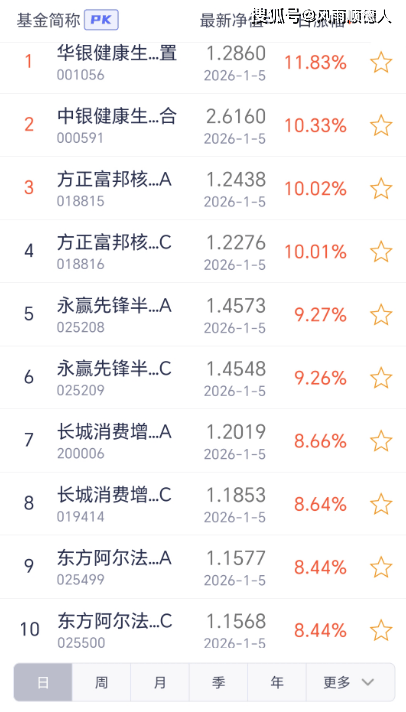 5日开放式基金净值增长排名前10的基金分别是:华银健康生活主题灵活配置、中银健康生活混合、方正富邦核心优势混合A、方正富邦核心优势混合C、永赢先锋半导体智选混合发起A、永赢先锋半导体智选混合发起C、长城消费增值混合A、长城消费增值混合C、东方阿尔法科技智选混合发起A、东方阿尔法科技智选混合发起C。