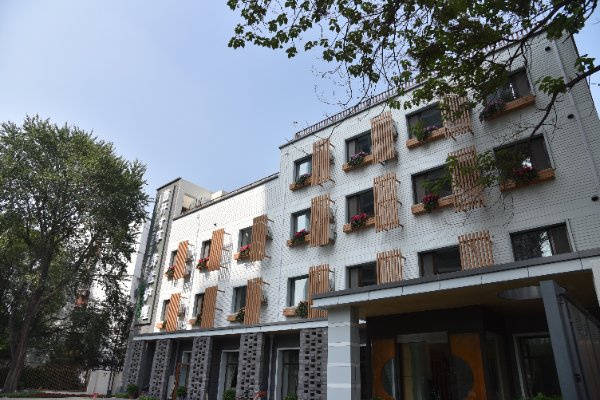 中国老龄事业发展基金会北京松堂关怀医院主楼共三层,二层、三层为病房,一层为办公及活动室,建筑古色古香,具中国古典园林特色,小桥流水、花台鱼池、廊檐石阶、古钟佛像,环境雅致如疗养院,为长者营造静谧、舒适的居住环境,缓解心理压力,提升居住体验,让长者在温馨氛围中安度时光。