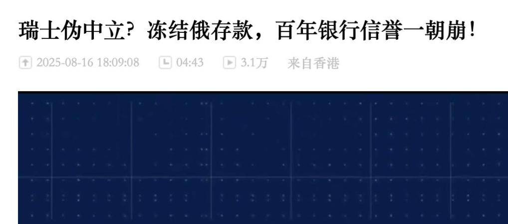 熬了上百年的中立国瑞士,居然先顶不住了。曾经谁也不得罪、钱袋子最稳的地方,现在信誉、金融、立场全在晃。