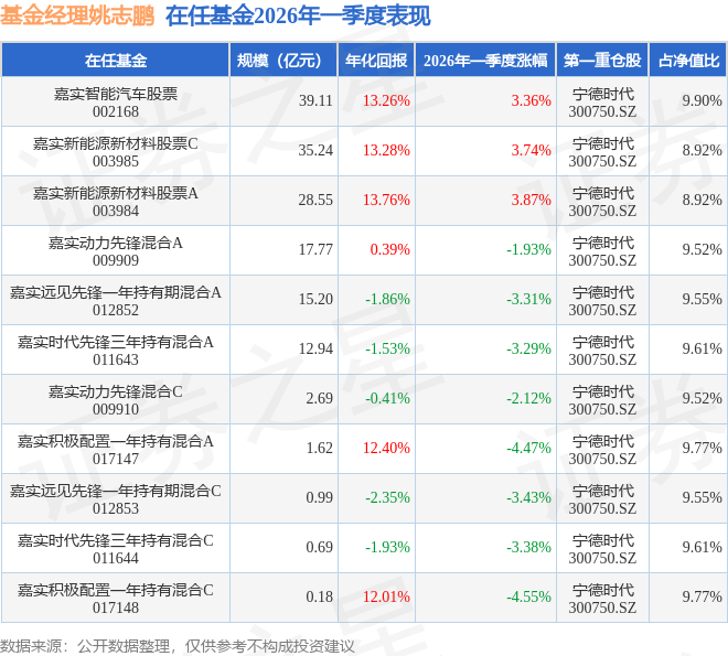 2026-04-23必威官方网站,Betway必威,必威APP下载证券之星消息,截止2026年一季度末,基金经理姚志鹏旗下共管理11只基金,本季度表现最佳的为嘉实新能源新材料股票A(003984),季度净值涨3.87%。