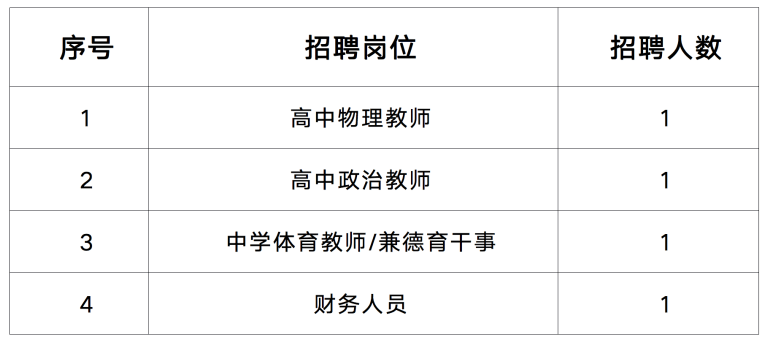 根据学校教育教学发展需要,现面向社会公开招聘编外教职工4名,欢迎广大热爱教育事业、胸怀教育理想的优秀人才报名参加。